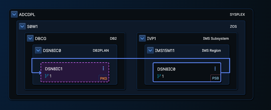 WatchTower Topology is now extended with IMS Connections to DB2 and MQ. It is able to discover connections between PSB and DB2 Package or MQ Queue respectively.