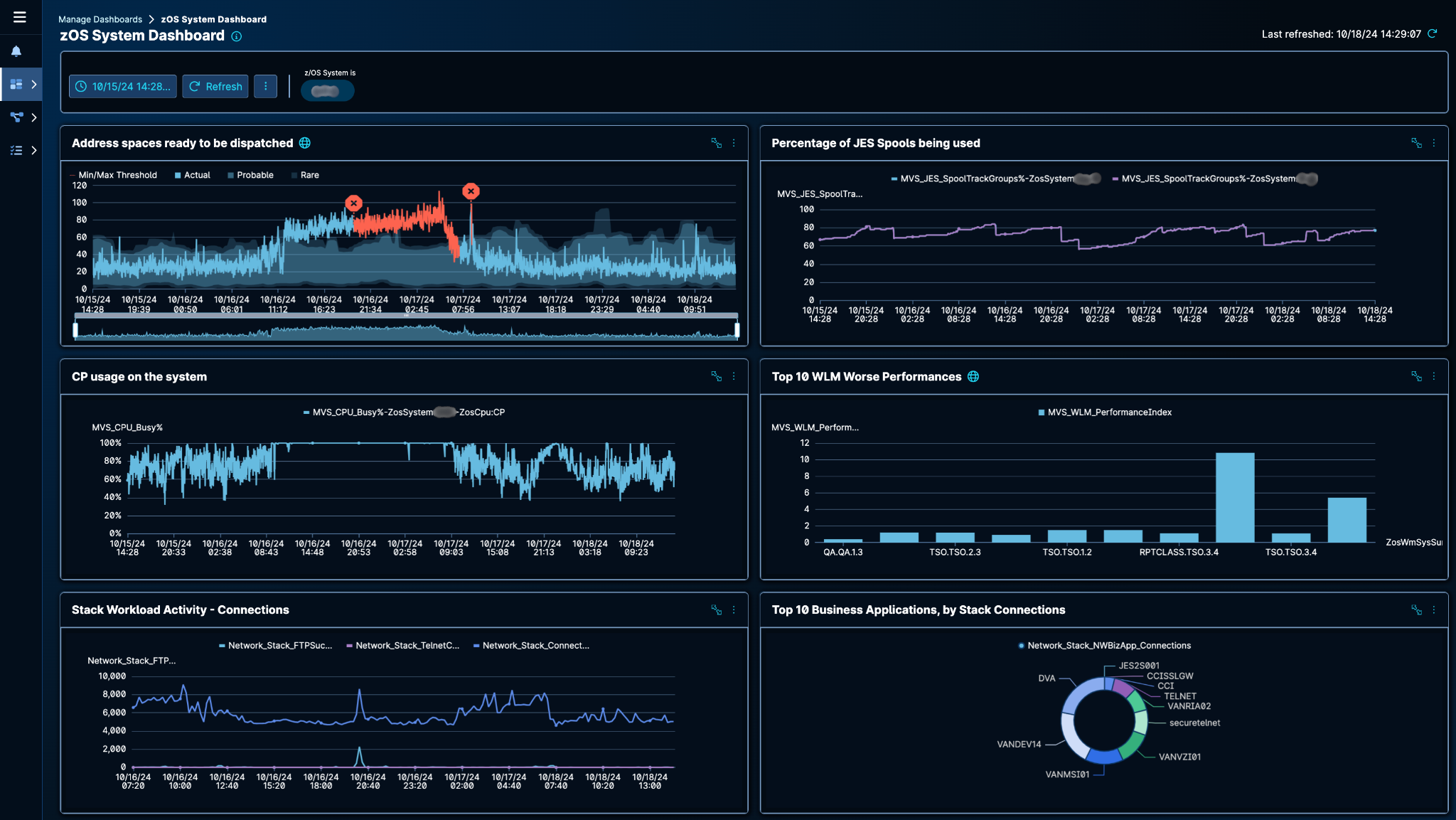 Empower users to focus on the applicable information they want to see, to track mainframe performance. Users will be able to quickly develop insights into the performance of their mainframe environment. Sample dashboards are provided for LPAR, CICS, MQ and Network problem diagnostics.